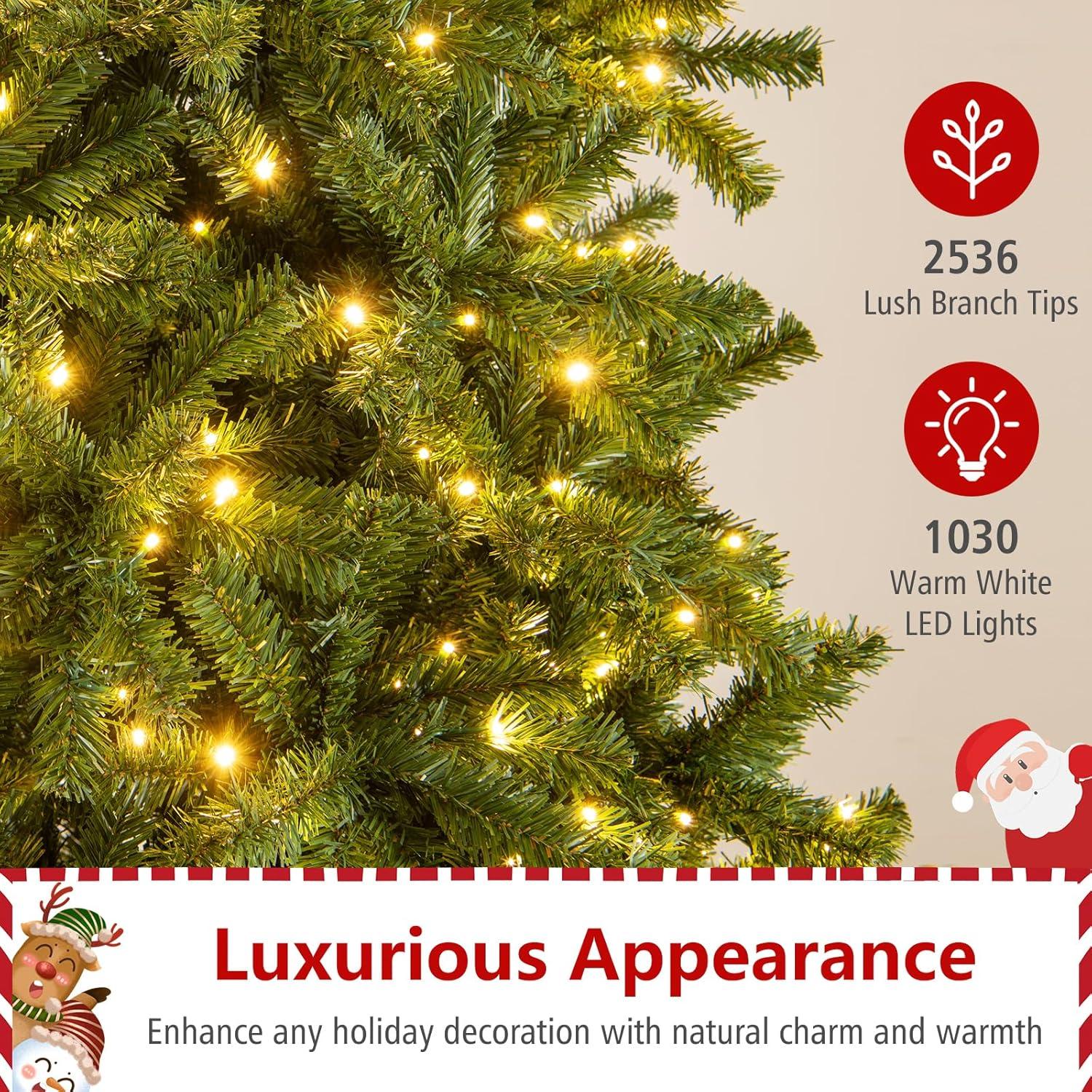 Luxurious Appearance: Adorned with 2840 lush branch tips, this tree showcases a full and vibrant appearance that breathes life into any setting. It’s also equipped with 1000 warm white LED lights, creating a cozy and inviting atmosphere that enhances the festive spirit of your holiday decoration.