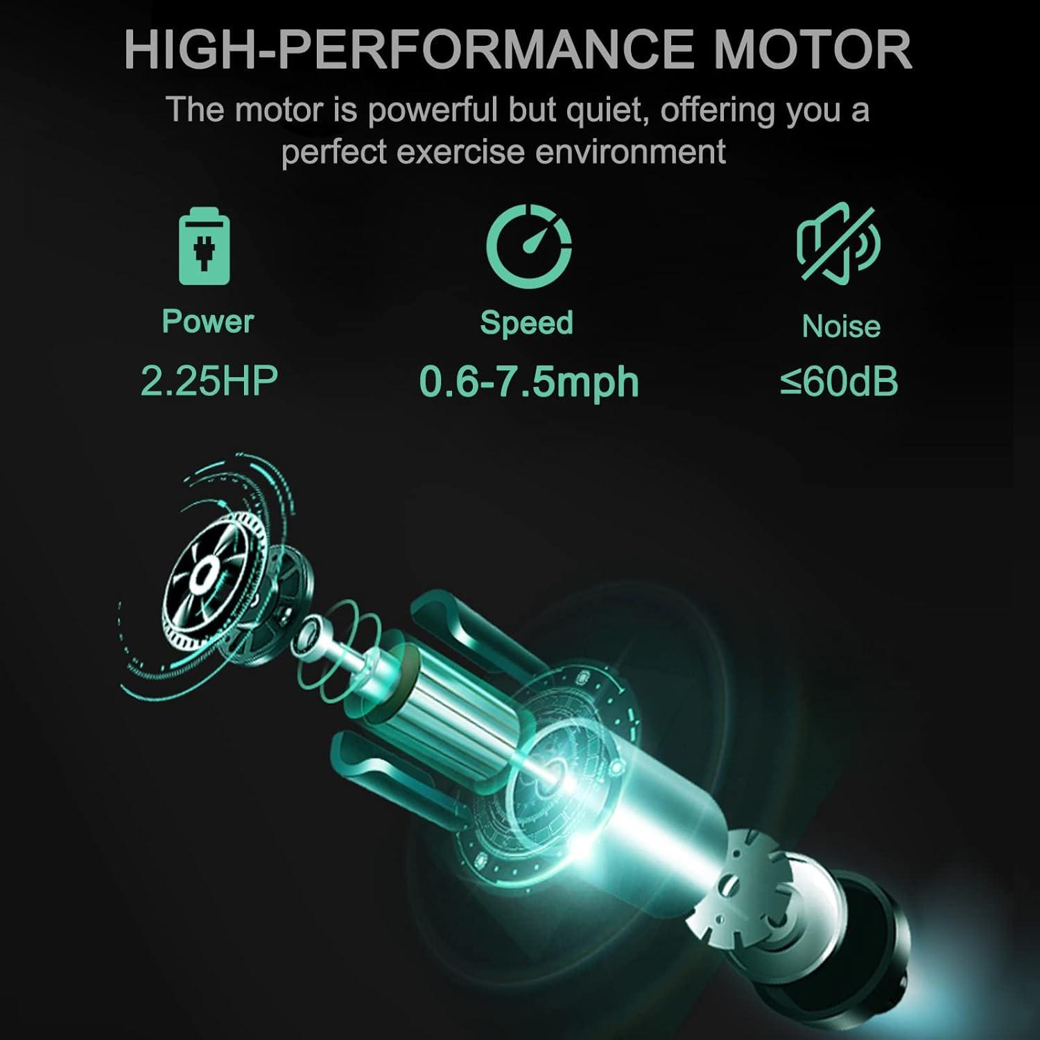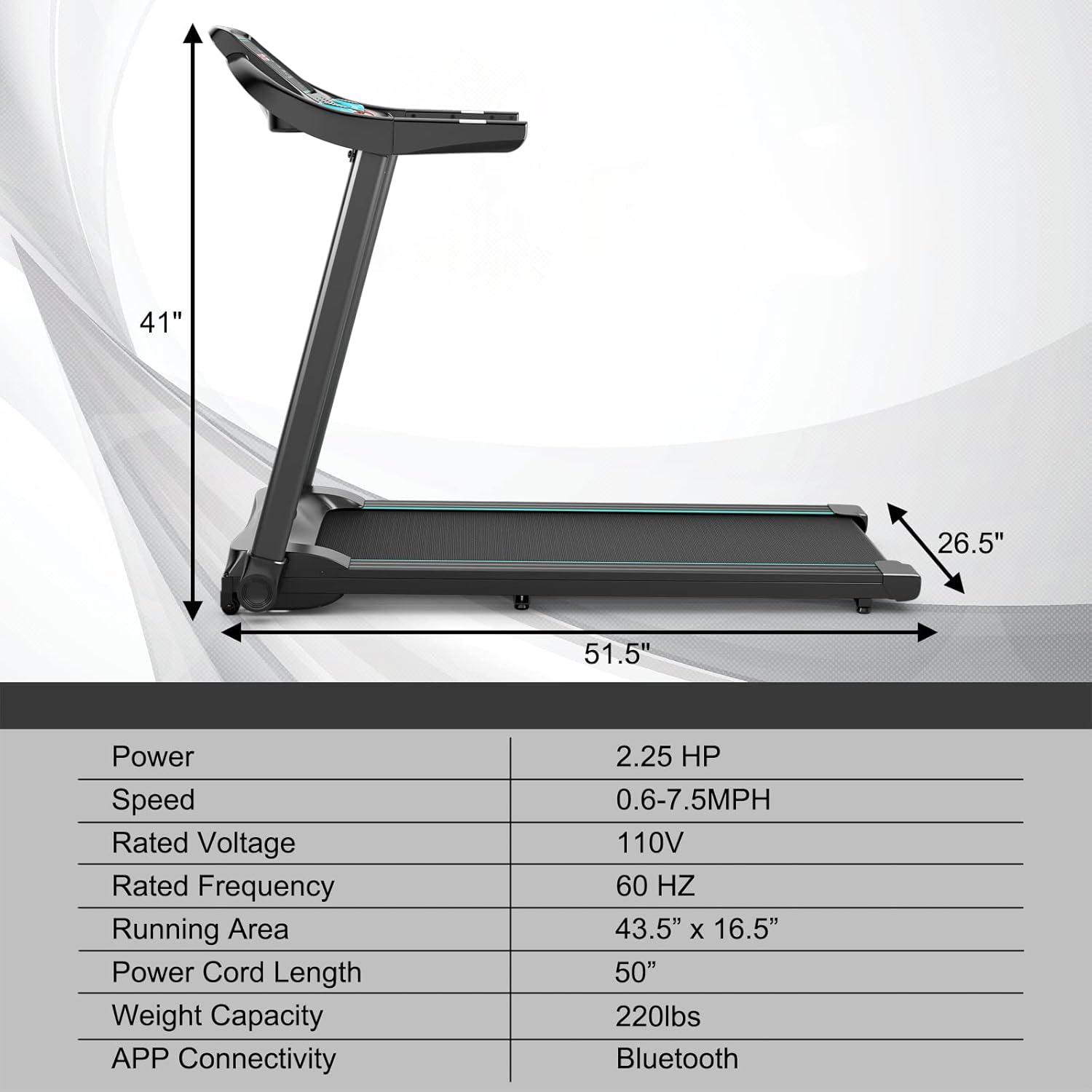 【Powerful but Quiet Motor】With 2.25HP powerful motor of high performance, this treadmill will perfectly satisfy all your workout needs. What’s more, the motor runs with low noise, which will never disturb your neighbors or a sleeping baby next room. The speed range is from 0.6 to 7.5mph and the speed unit could be switched between mile and km in APP.