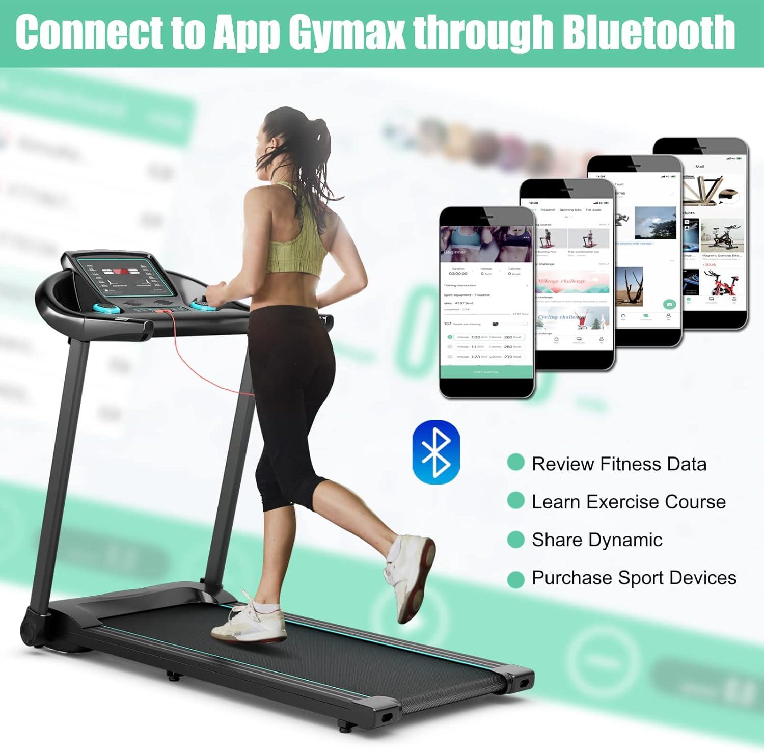 【Easy Movement & APP Control】The bottom wheels make the movement of treadmill quite effortless. And the treadmill can be connected to your phone through Gymax App with Bluetooth, so you can explore more fun and useful functions during exercise. This treadmill is available for multiple places, such as home, gym and office.