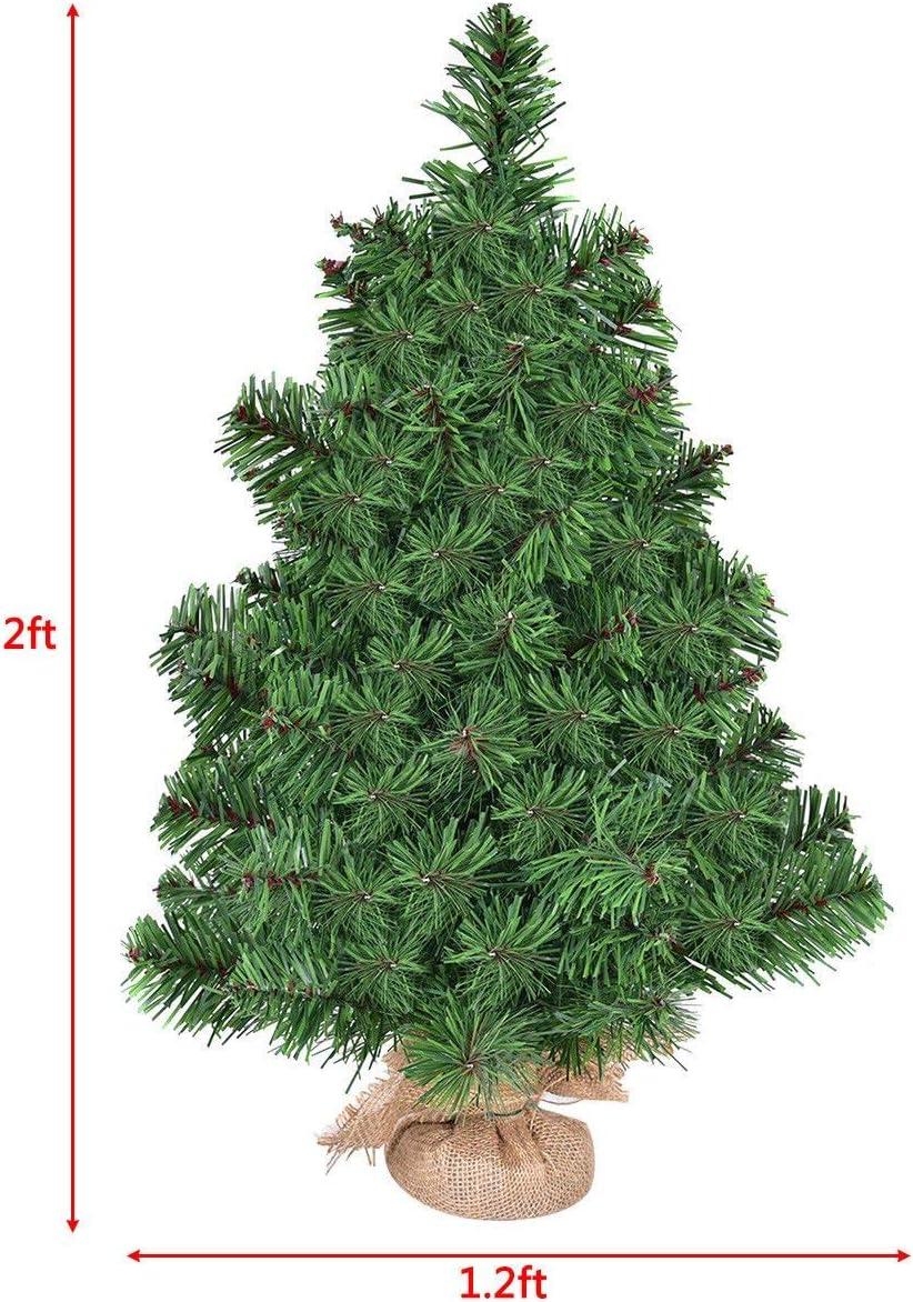 imageGoplus 2ft PreLit Tabletop Christmas Tree Small Artificial Fir Tree with 35 Warm White LED Lights 234 PVC ampamp PE Branch Tips Burlap Base Battery Operated Mini Xmas Tree for Home Office Decoration2ft with Lights