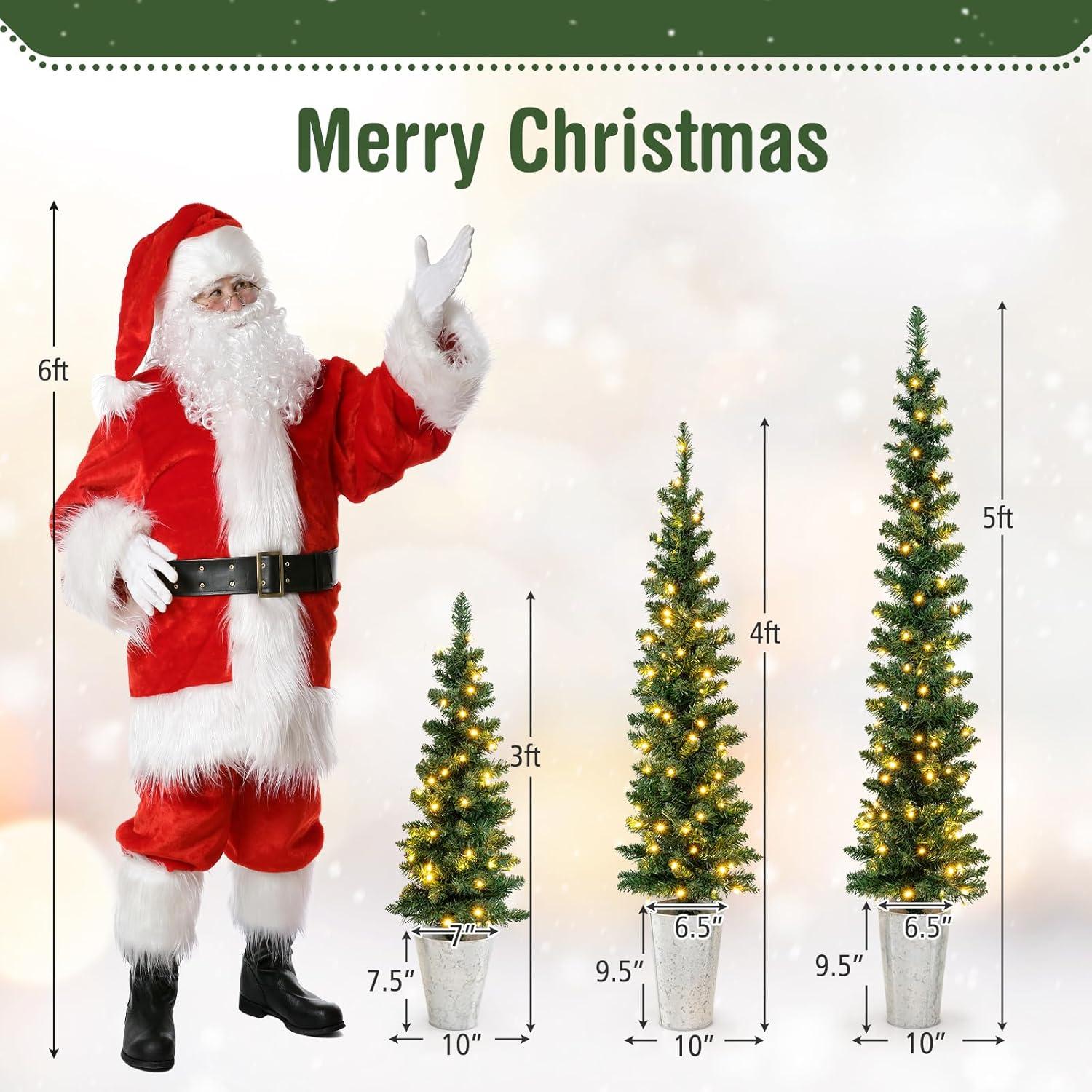 Goplus 3' 4' 5' Pre-Lit Snow Flocked Christmas Tree Set of 3, Slim Pencil Artificial Xmas Trees with 150 Warm White LED Lights, 146 Branch Tips, Metal Base, for Holiday Seasonal Office Home Decor(Style-A)