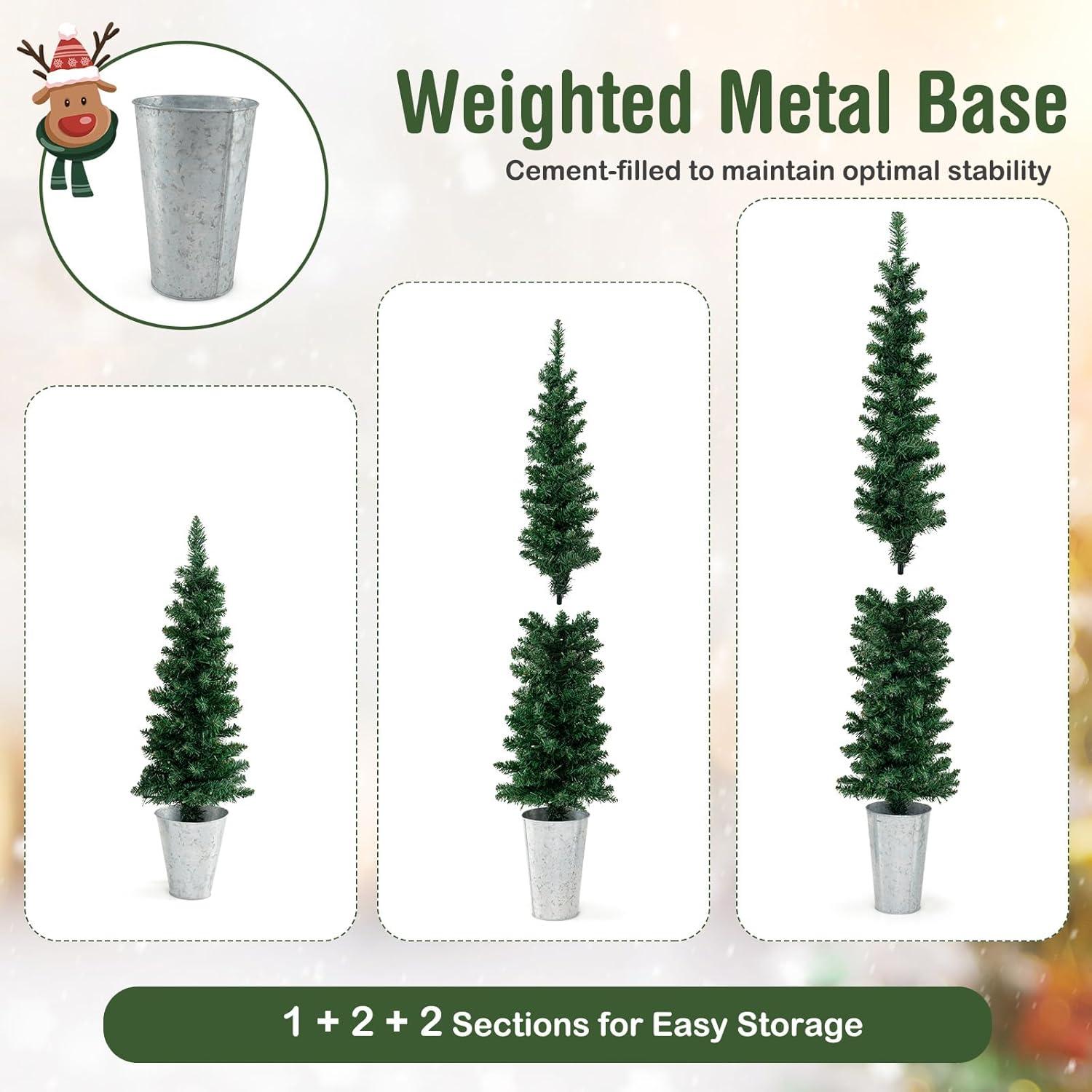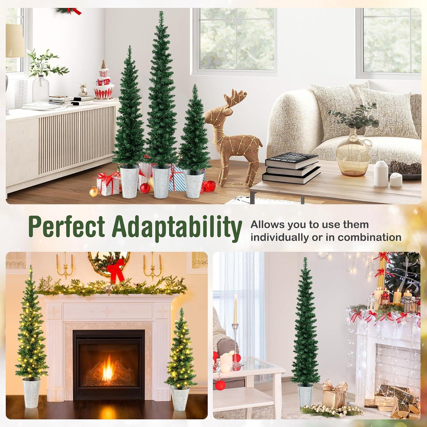 imageGoplus 3 4 5 PreLit Snow Flocked Christmas Tree Set of 3 Slim Pencil Artificial Xmas Trees with 150 Warm White LED Lights 146 Branch Tips Metal Base for Holiday Seasonal Office Home DecorStyleB