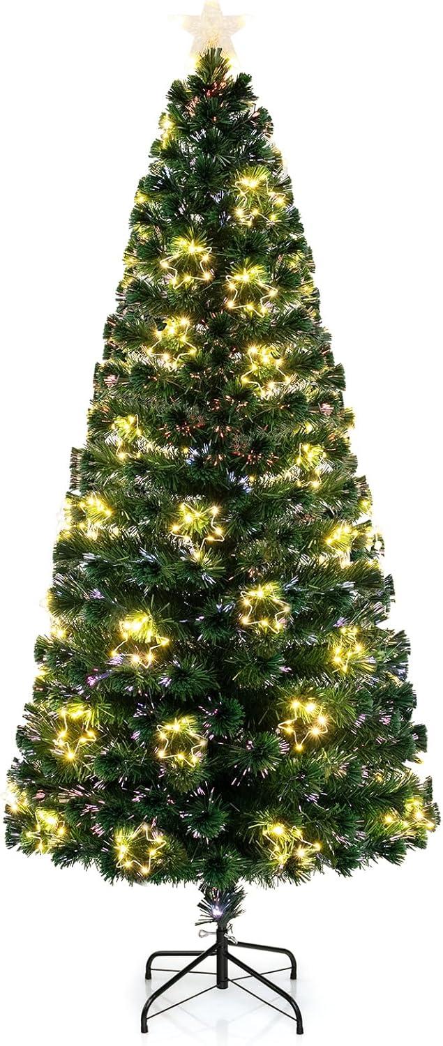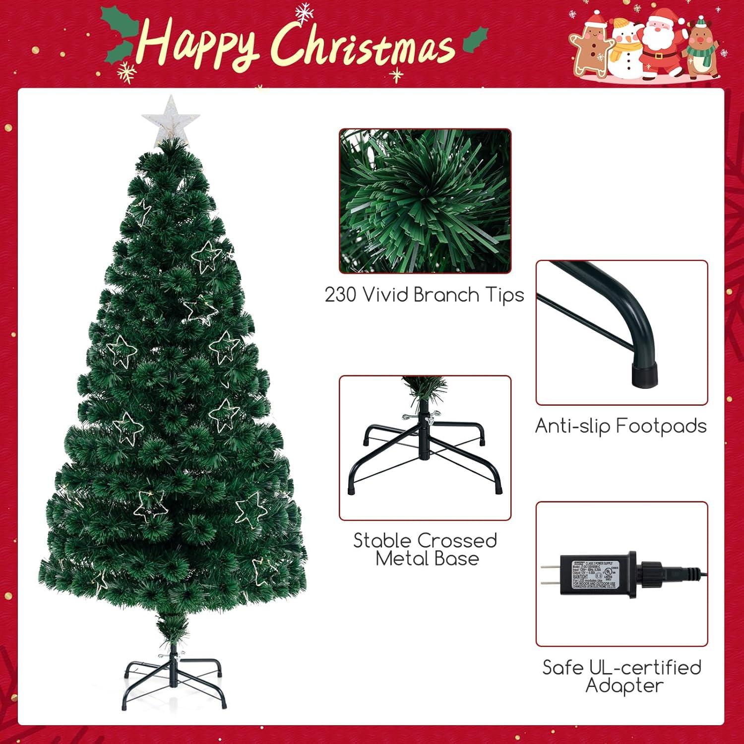 Pre-lit with slow-flashing multicolored fiber optic lights