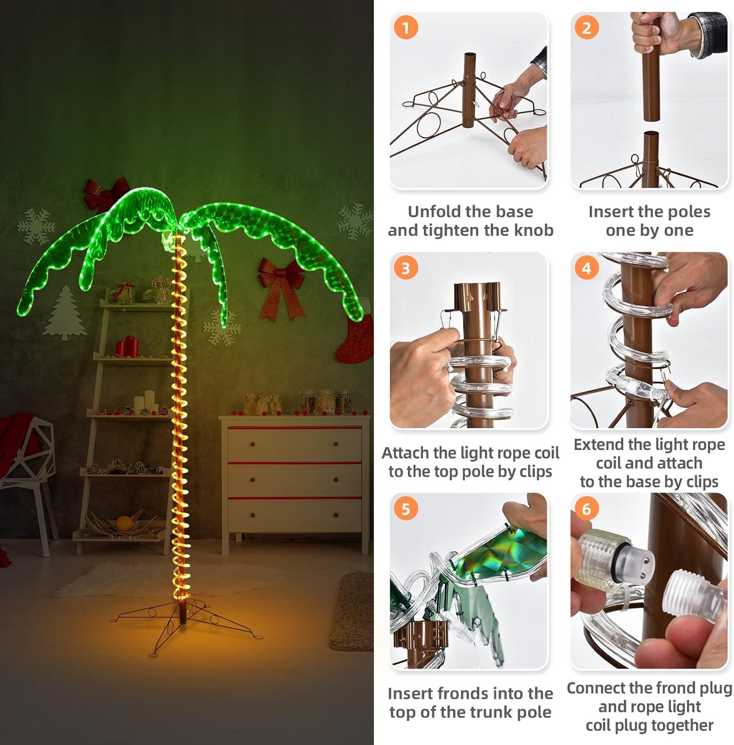 Warm LED Rope Lights – Our led palm tree with 198 LED rope lights will add more vitality to your home, and you can turn off the light in the daytime to save electricity. The warm brightness also makes your eyes feel comfortable at night. In addition, the tight connections of the rope light plug can prevent water intrusion and damage.
