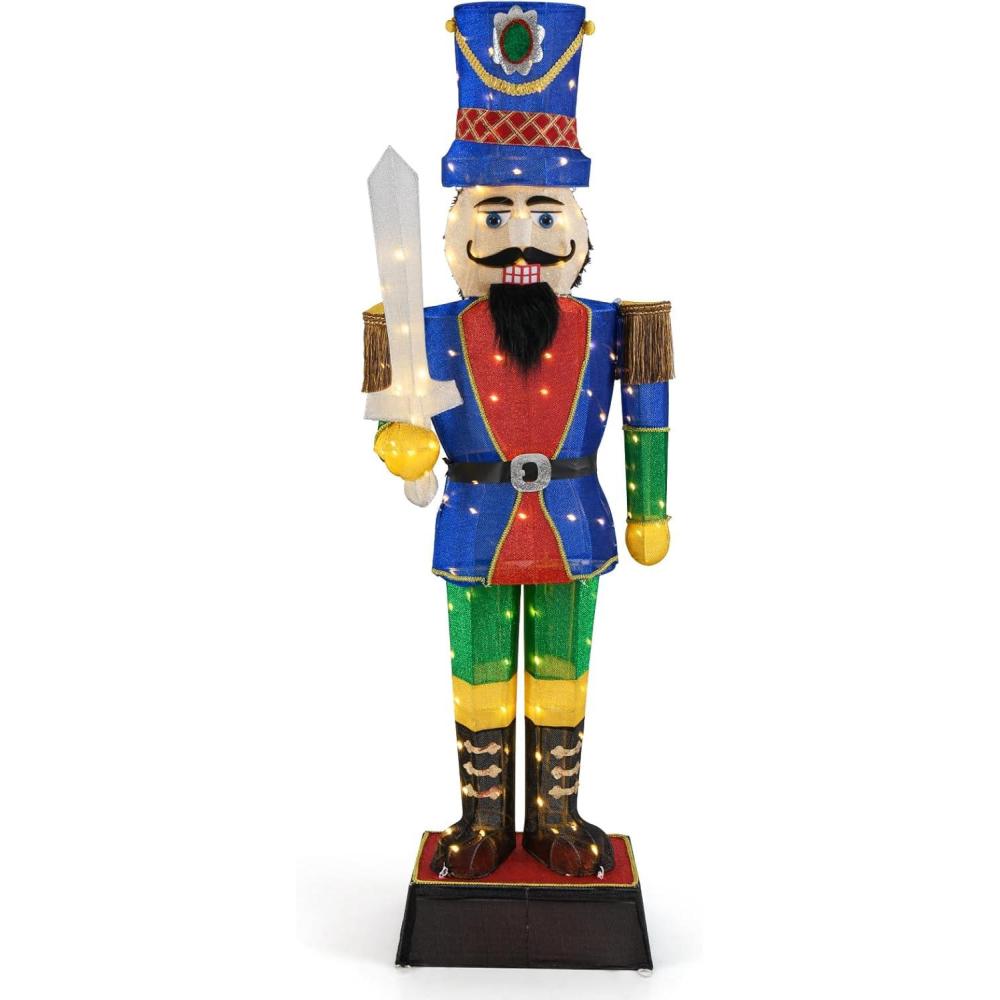 Weatherproof Materials – Constructed to withstand the test of time, the pre-lit Christmas nutcracker is resistant to wind, rain, and snow. The all-weather design makes the soldier a beacon of festive joy throughout the season.