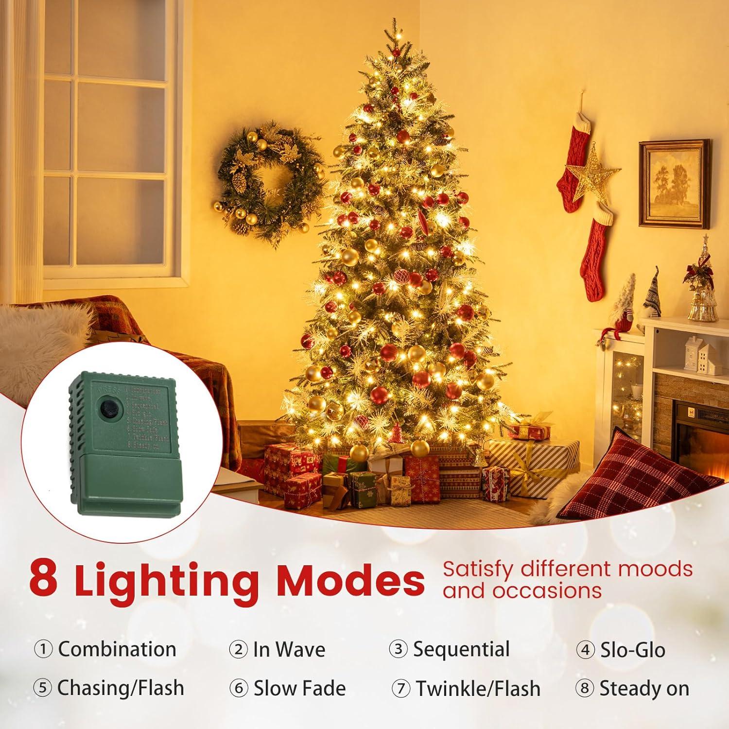 Lighting Variety: The lights come with 8 lighting modes, featuring a static option and 7 dynamic patterns, allows you to customize the tree’s glow to suit your mood or match the evening's theme. The modes are easy to adjust by a controller on the tree.