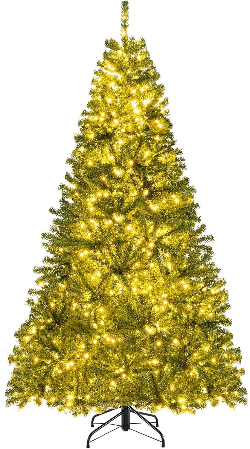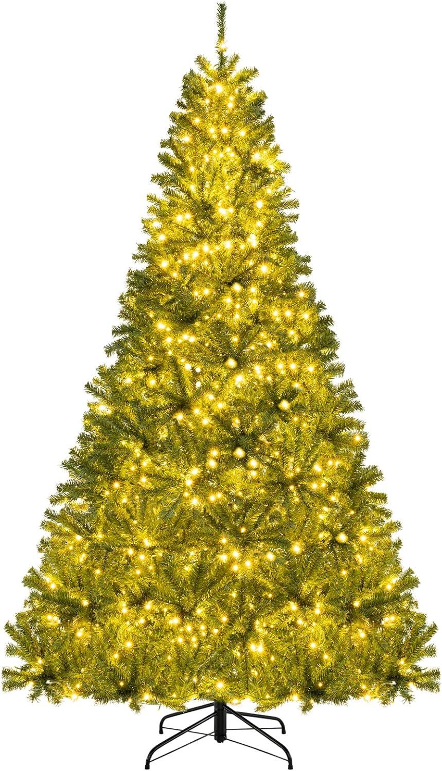 Our 6/7/8 ft pre-lit artificial Christmas tree stands out with its 680/1098/1528 lush branch tips, creating a full and life-like appearance, while 700/1000/1200 warm white LED lights cast a soft and festive glow throughout your space. Designed for convenience and versatility, the tree offers adjustable lighting settings, including steady on, flashing, slow fade modes, complemented by 4 brightness levels and a timer function, controlled via a remote for effortless customization. In contrast others that are flammable, unsafe, and fragile, ours’ tree is crafted from flame-retardant PVC, ensuring durability and safety, and stands on a stable crossed metal base for added security. Installation is straightforward with its hinged branches that lock automatically in place and a convenient 3-section structure for easy storage. Perfect for a variety of settings beyond just Christmas, this tree adds a touch of elegance to any celebration, making every occasion memorable. Note: The decorations are not included