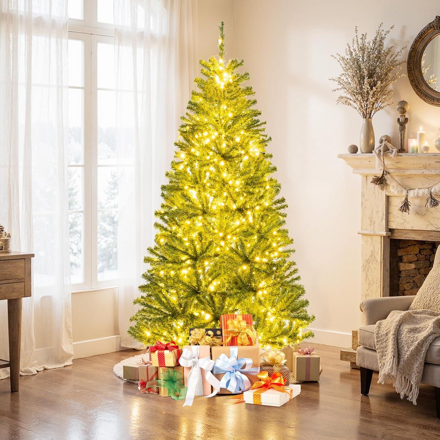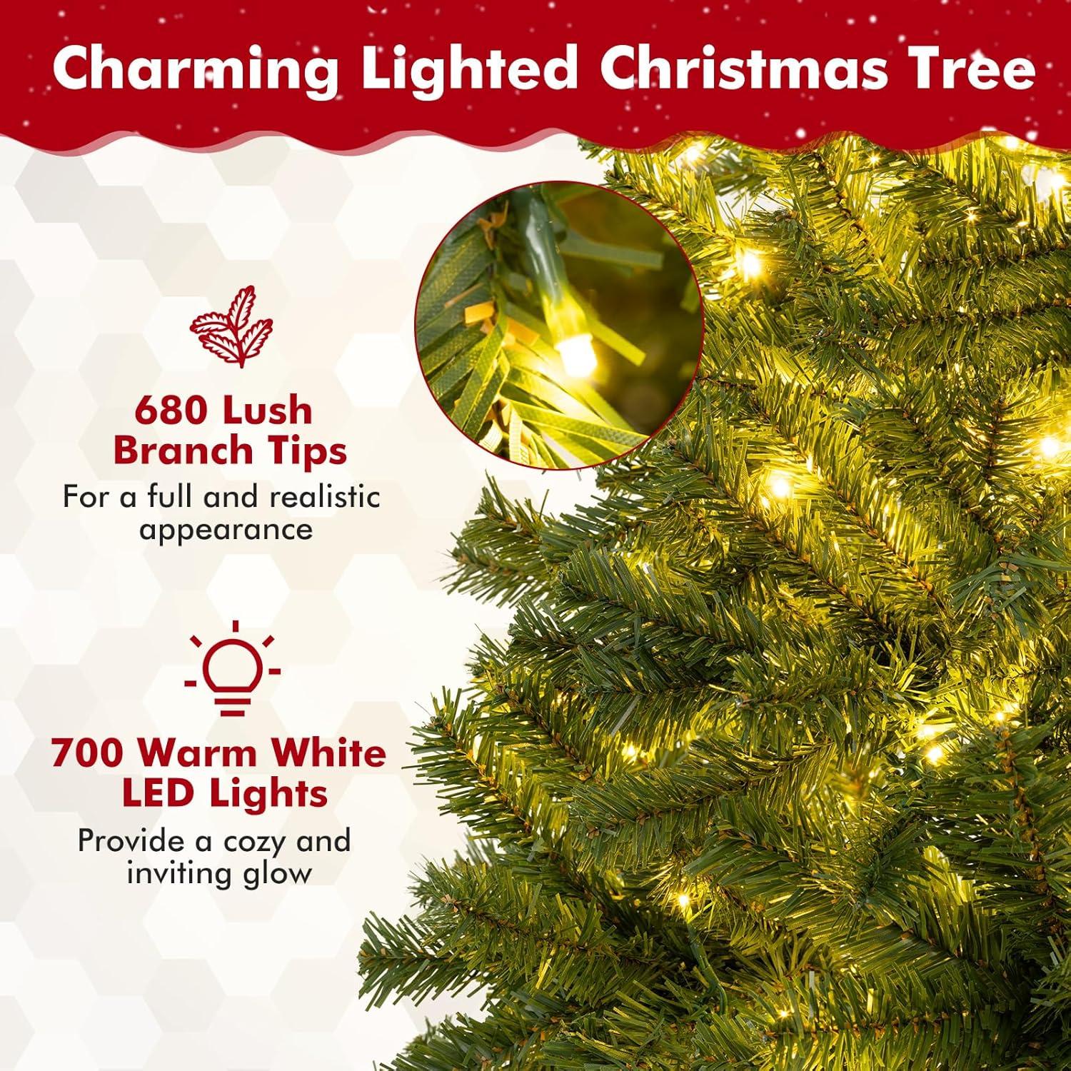 Stunning Appearance: This 6 ft charming lighted Christmas tree is adorned with 680 lush branch tips and illuminated by 700 warm white LED lights. The densely arranged branches offer a full-bodied appearance, turning your home into a festive wonderland.