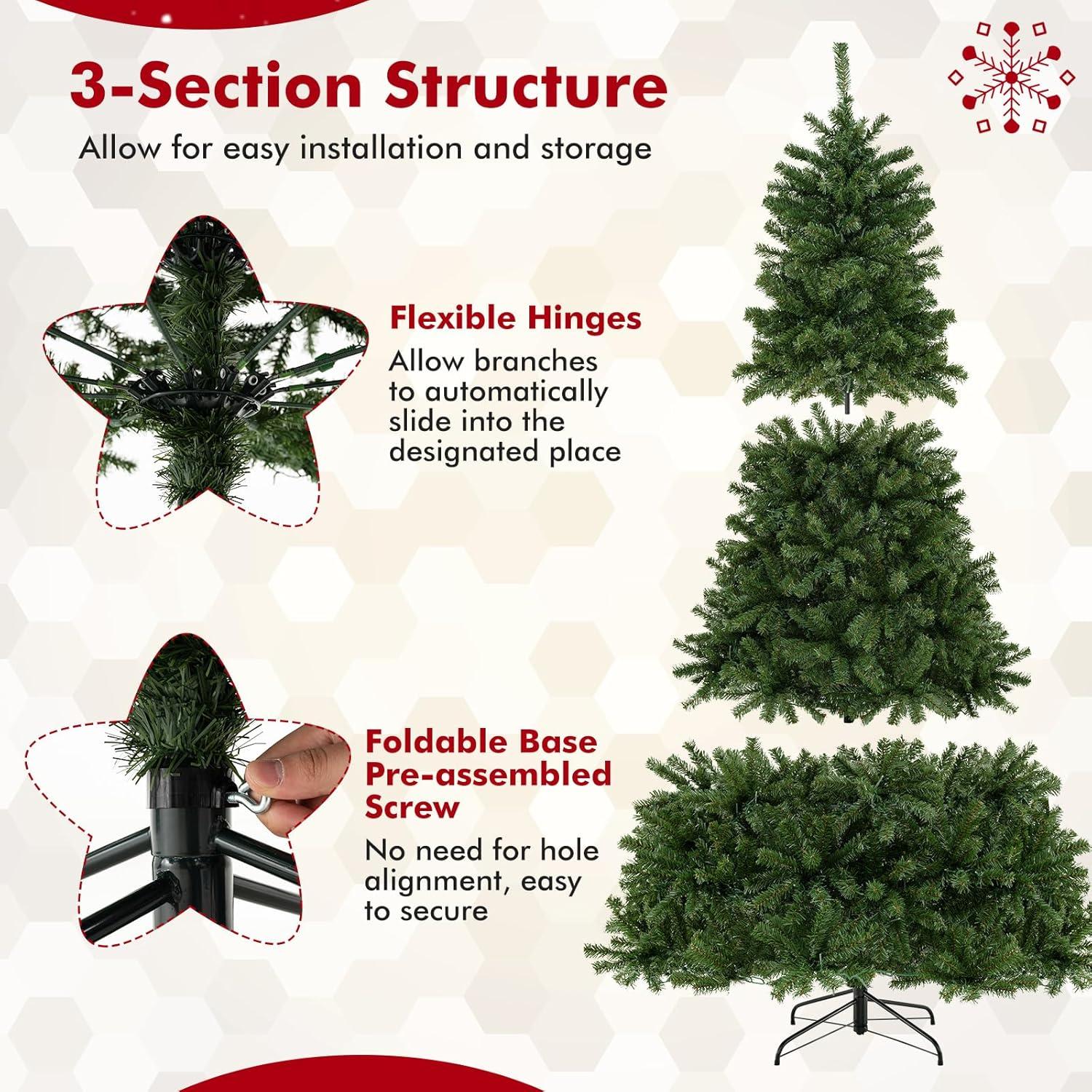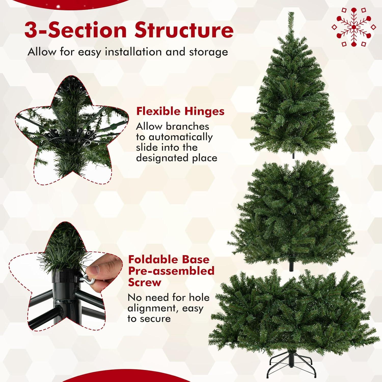 Easy Setup: Assembly is a breeze with this tree’s branches connected via flexible hinges that automatically snap into place. The foldable base with a pre-assembled screw eliminates alignment issues, and the tree itself splits into 3 sections for easy setup and storage.