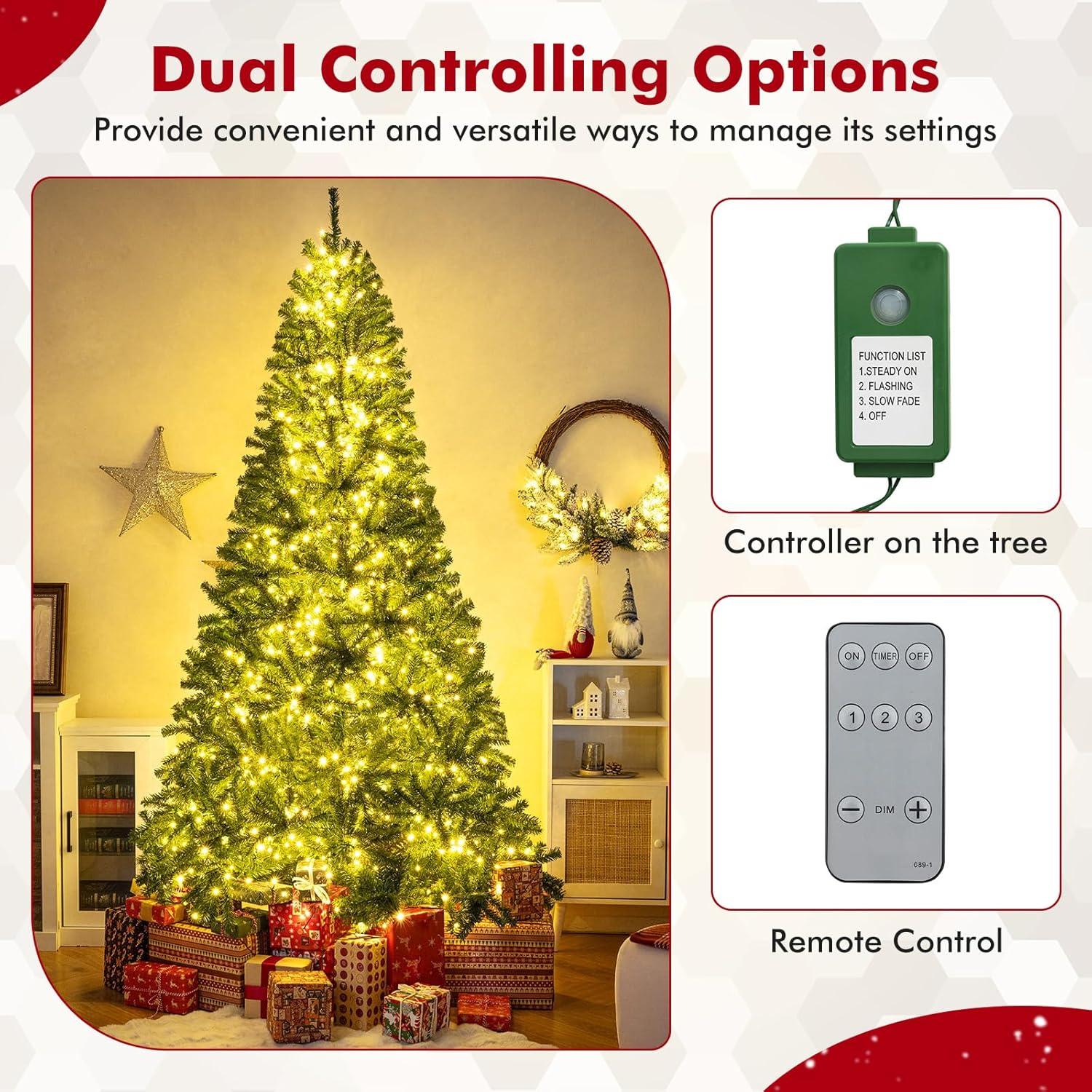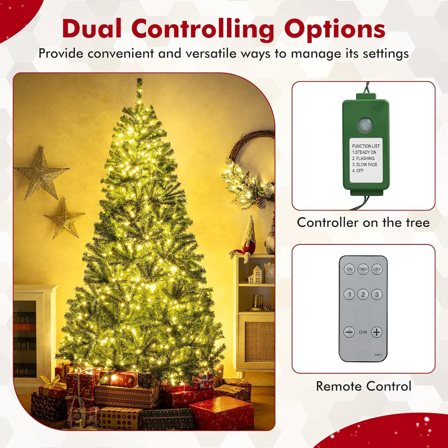Goplus 6 FT Pre-Lit Artificial Christmas Tree, Remote Control Xmas Tree with 700 Warm White LED Lights, 3 Modes, Timer, Hinges, 680 Branch Tips, Foldable Metal Stand, Home Office Holiday Decoration(Green)