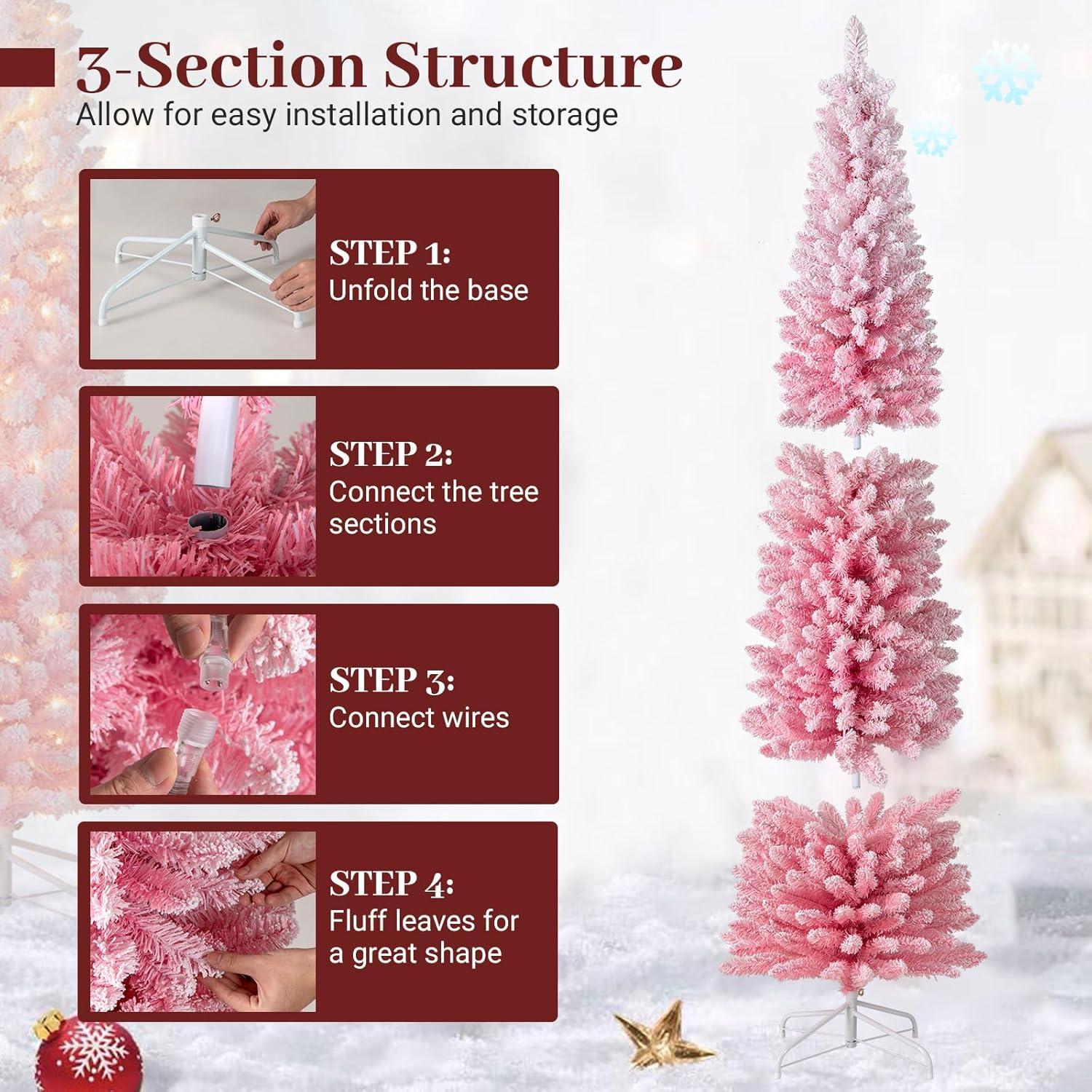 Be the first to review “Goplus 6ft Pink Slim Pencil Christmas Tree, Pre-lit Snow Flocked Artificial Skinny Xmas Tree with 140 Warm White LED Lights, 8 Lighting Modes, 392 Branch Tips & Metal Stand, Home Office Decoration(Pink-prelit)”
