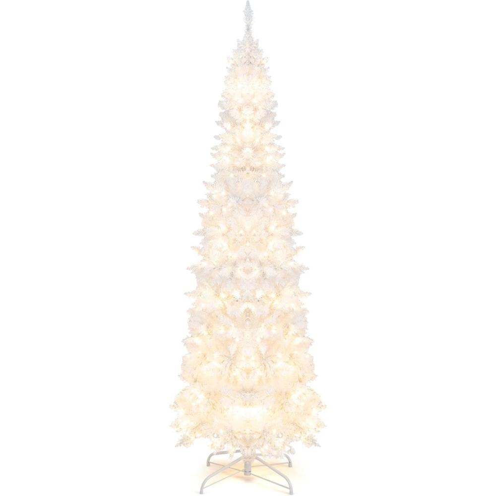 imageGoplus 6ft Pink Slim Pencil Christmas Tree Prelit Snow Flocked Artificial Skinny Xmas Tree with 140 Warm White LED Lights 8 Lighting Modes 392 Branch Tips ampamp Metal Stand Home Office DecorationWhiteprelit