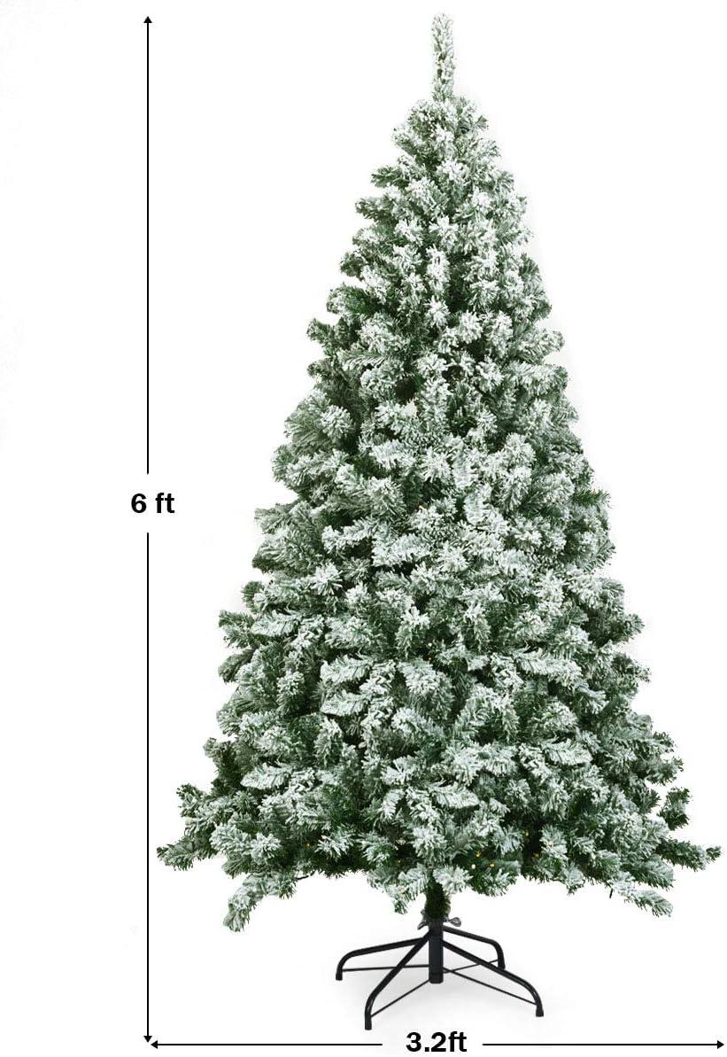 imageGoplus 6ft Pink Slim Pencil Christmas Tree Prelit Snow Flocked Artificial Skinny Xmas Tree with 140 Warm White LED Lights 8 Lighting Modes 392 Branch Tips ampamp Metal Stand Home Office DecorationGreen