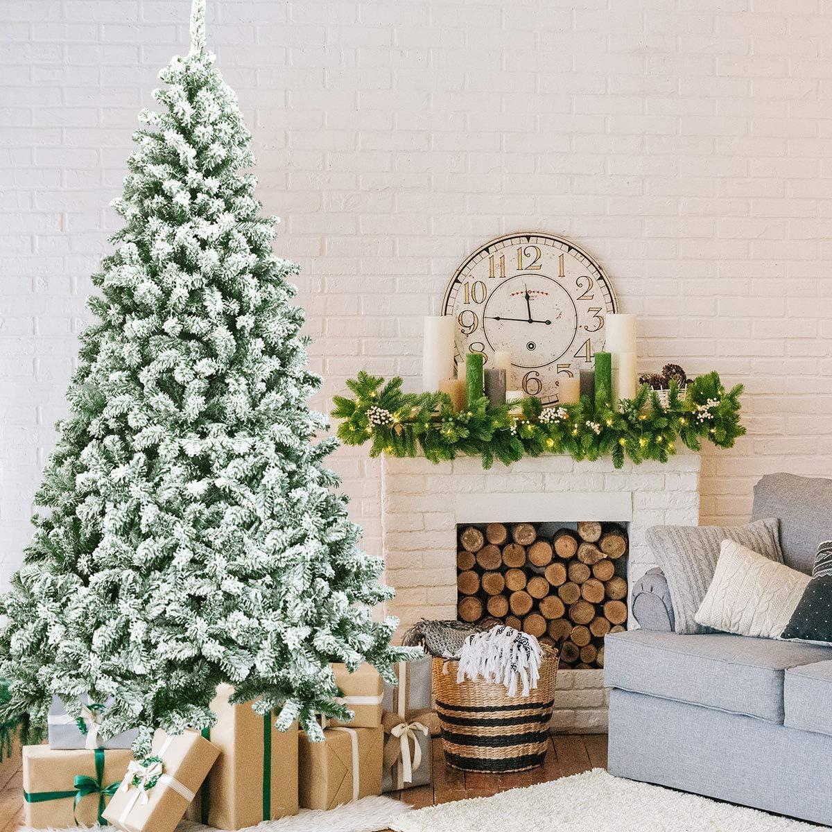 imageGoplus 6ft Pink Slim Pencil Christmas Tree Prelit Snow Flocked Artificial Skinny Xmas Tree with 140 Warm White LED Lights 8 Lighting Modes 392 Branch Tips ampamp Metal Stand Home Office DecorationWhite