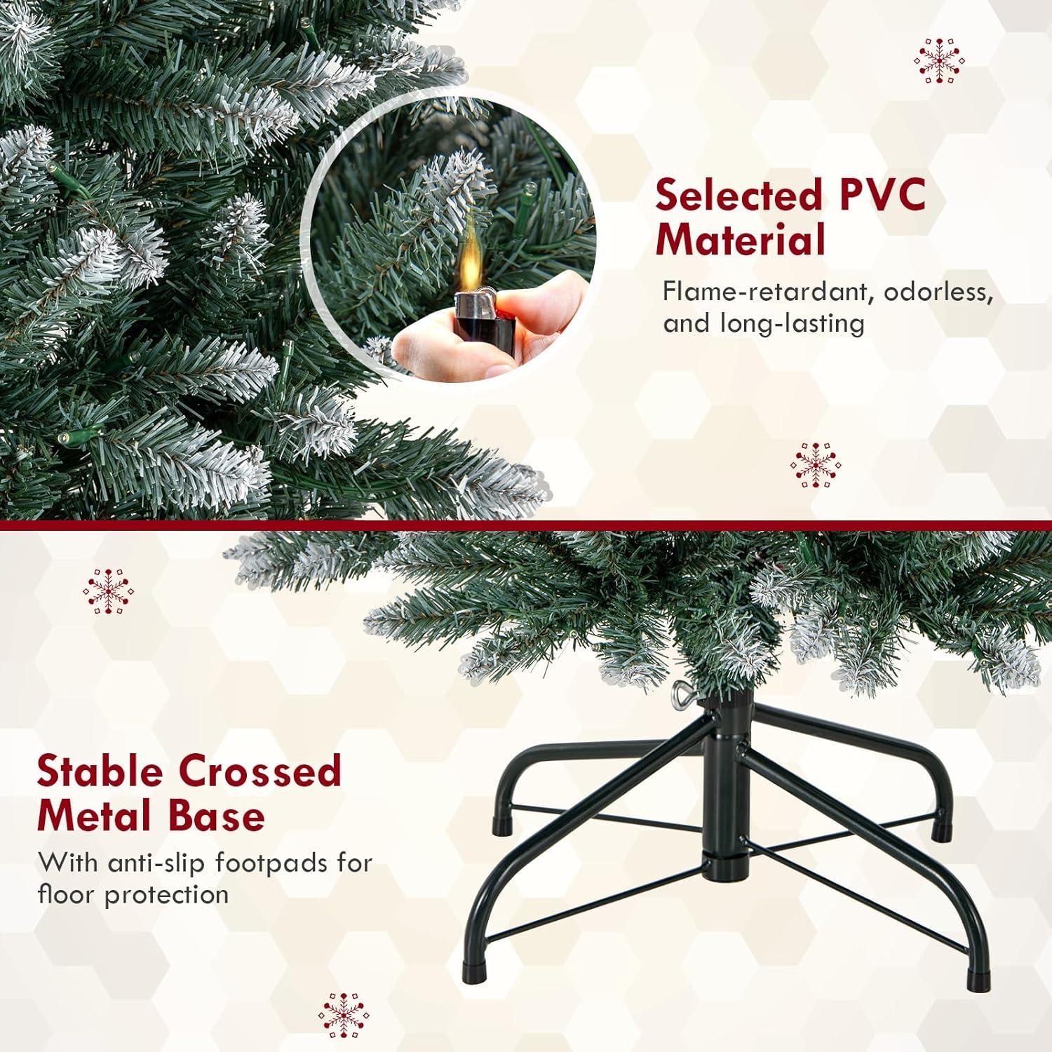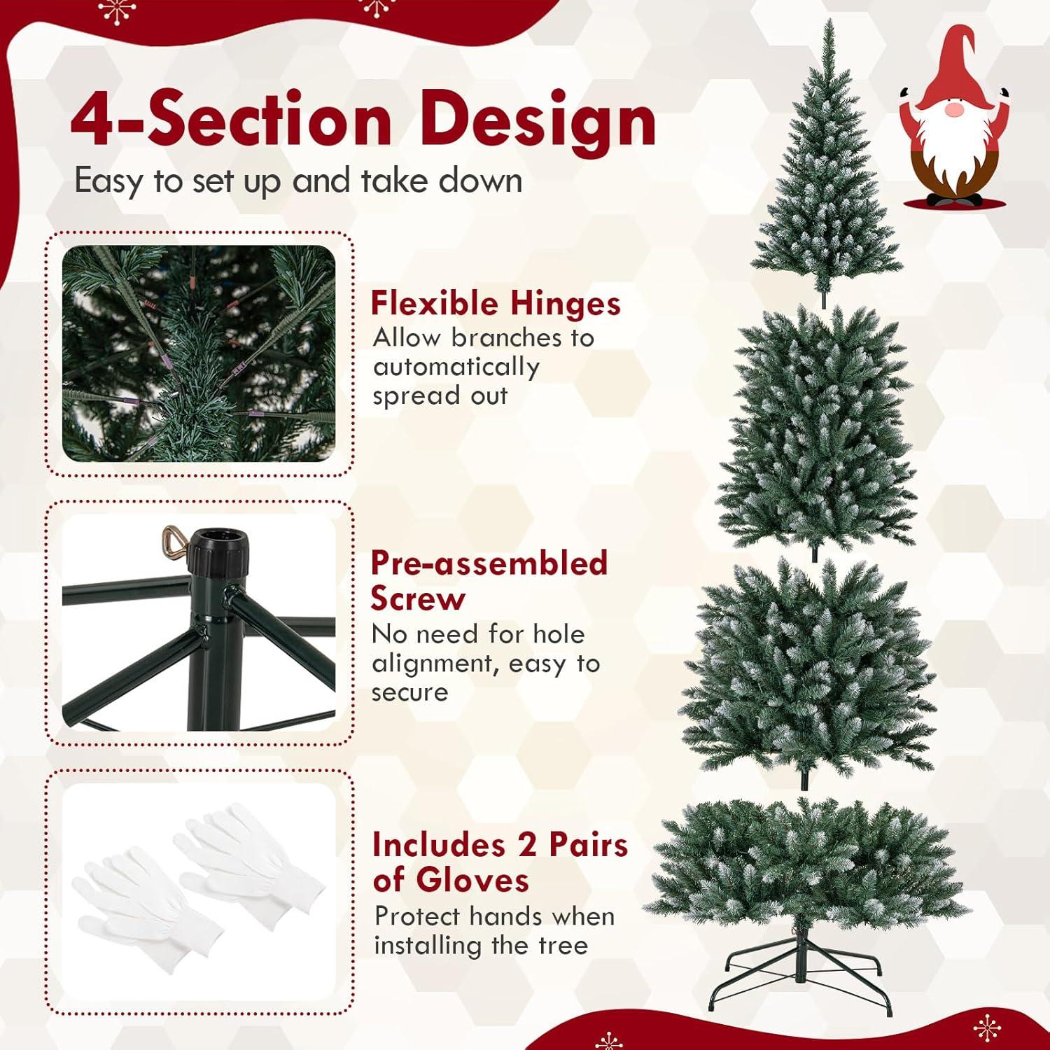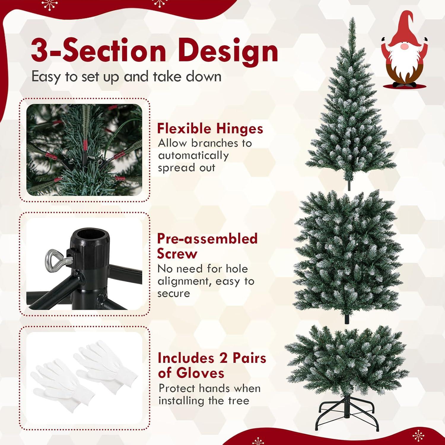 Sleek and Elegant Appearance: This 6ft artificial Christmas tree features 390 verdant branch tips, creating a natural and vivid appearance. And it boasts a slender profile, making it a perfect fit for tight spaces and small rooms.