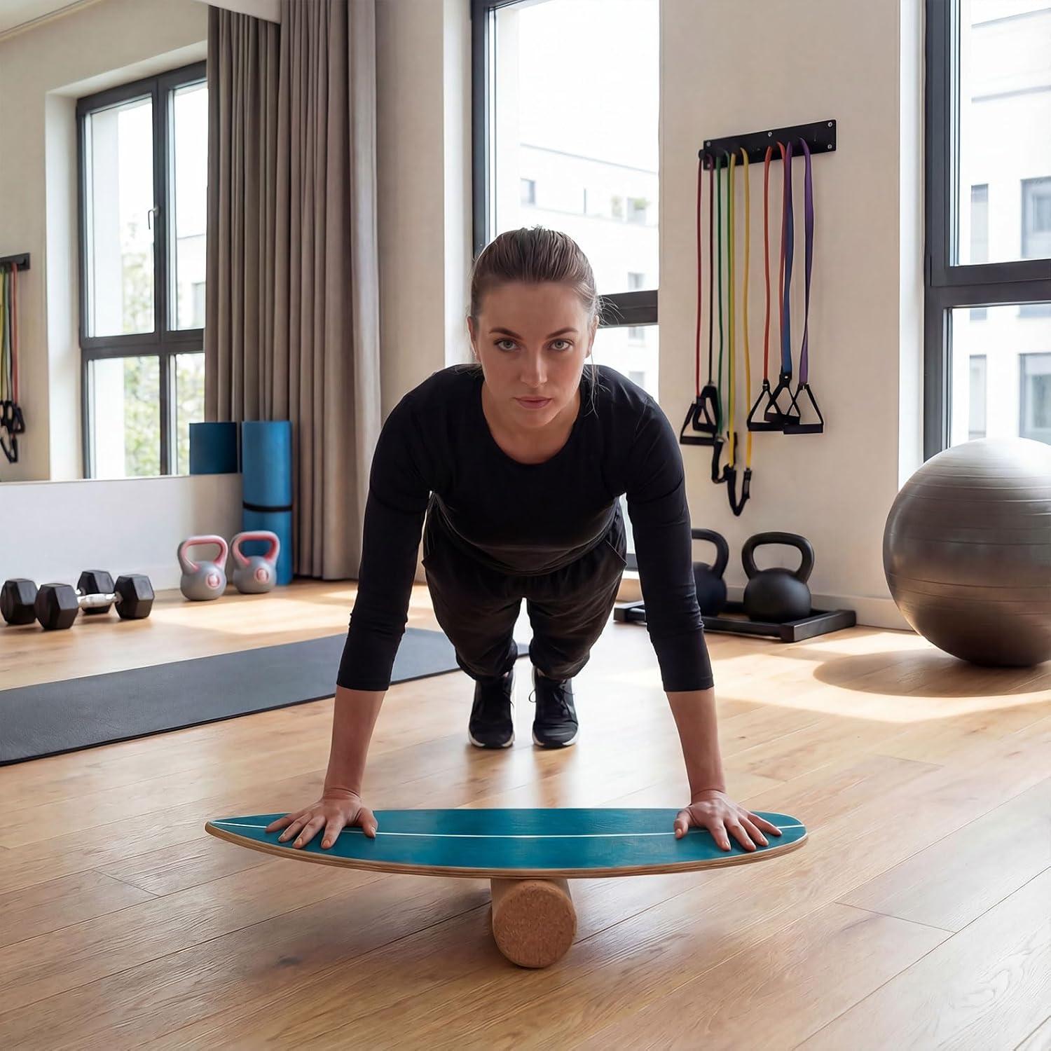 Portable Cork Roller: The included cork roller provides lightweight, easy-to-carry support for your workouts. Beyond balance training, it's also perfect for yoga, Pilates, stretching, and recovery massage, adding extra value and convenience to your daily fitness or wellness routine.