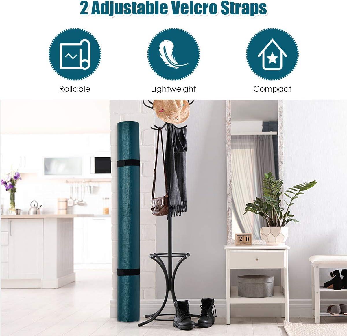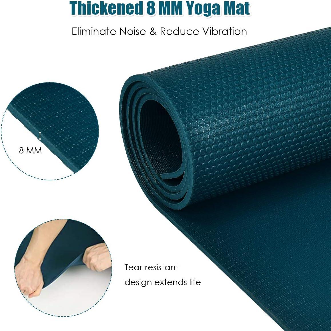Goplus Large Yoga Mat, 7′ x 5′ x 8mm / 6′ x 4′ x 8mm Workout Mat with Straps, Eco Friendly Extra Thick Non Slip Fitness Exercise Mat for Home Gym Floor Cardio, Plyo, MMA, Jump Rope, Stretch(7’x5′ Oasis Blue)