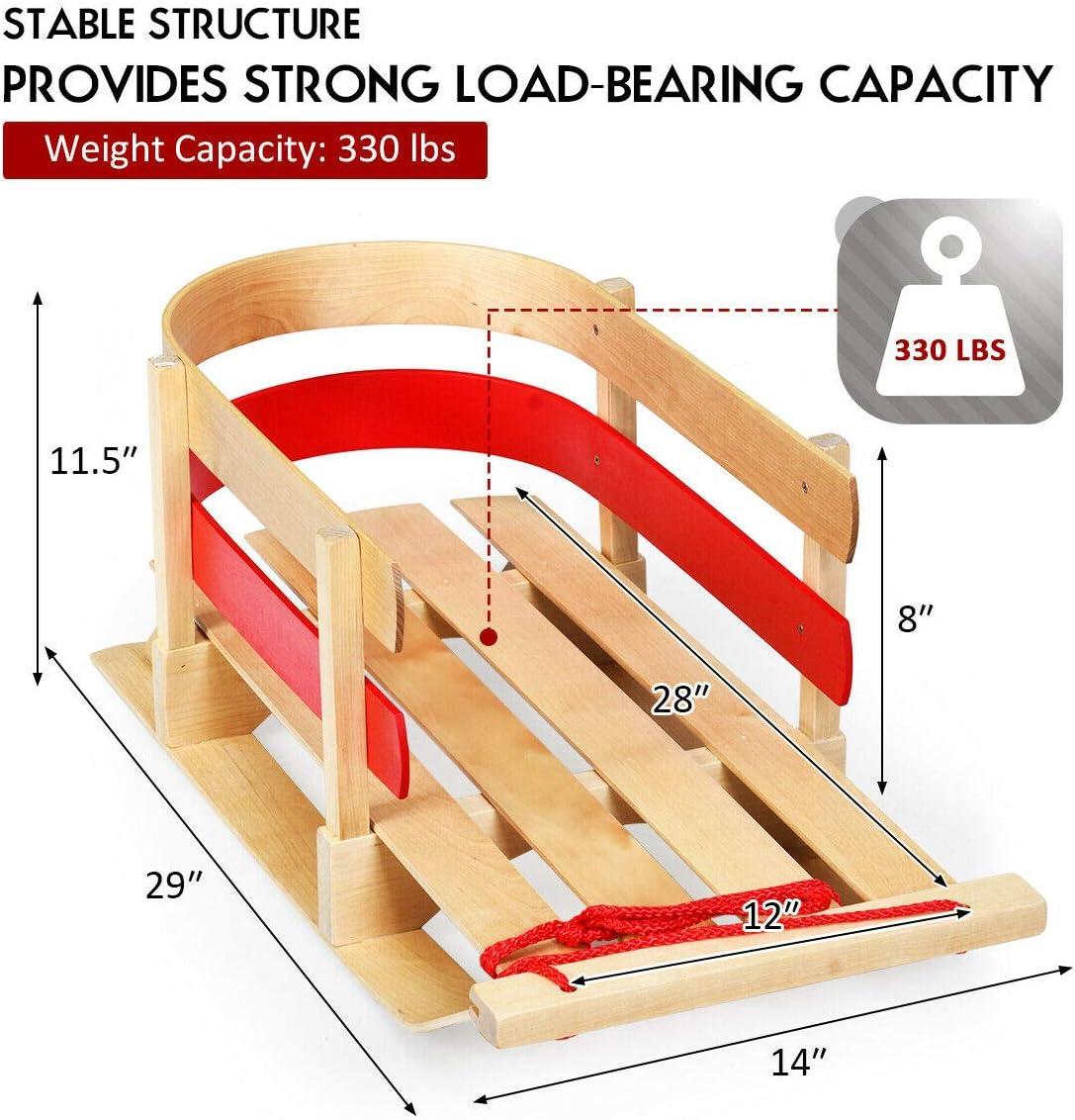 【Stable Structure and High-quality Materials】 Made of high-quality fraxinus mandshurica wood, this baby sled is smooth and burr-free and won't hurt your child's skin. Steam bent backrest and runners make it more stable in use and will not be easily separated and collapse. And it has a strong load-bearing capacity of up to 330lbs.
